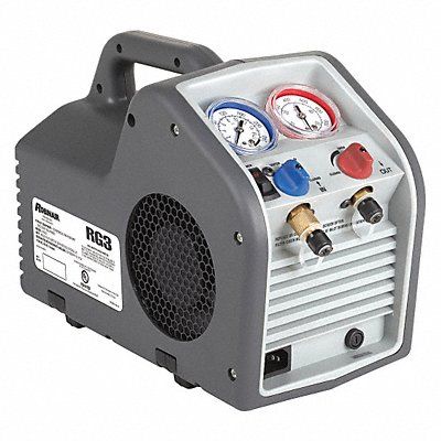 Refrigerant Recovery Machine 2-Port Height (In.) 11 in Depth (In.) 8 5/16 in Width (In.) 15 in NEMA 5-15p Male Plug Electrical Connections Hose Connection 1/4 in Male Motor HP 1/3 hp Voltage 115 V Requires Hoses Manifold Gauge Set Recovery Cylinder Oilless Compressor For Use With R-12 R-134a R-22 R-401a R-401b R-401c R-402a R-402b R-404a R-406a R-407a R-407b R-407c R-407d R-408a R-409a R-410a R-411a R-411b R-412a R-500 R-502 R-507 R-509 Includes Manual 18 lb