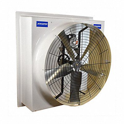 Agricultural Exhaust Fan Assembled Fully Assembled Blade Diameter 36 in Blade Material Steel Drive Type Belt Drive Exhaust Airflow @ 0.000 in SP 10 250 cfm For Cut-Out Height 43 3/4 in For Cut-Out Width 43 1/2 in For Maximum Wall Thickness 12 in For Minimum Wall Thickness 2 in Frame Finish Polished Frame Material Fiberglass Guard Finish Powder Coated Guard Material Steel Guard Type Exhaust Housing Material Fiberglass Housing Finish Polished Tan Fiberglass