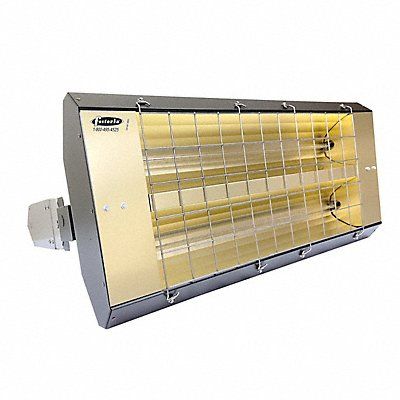 Infrared Quartz Electric Heater Overall Height Not Applicable Overall Length 33 in Overall Width 15 in Overall Depth 11 in Phase 1 Voltage 208 V Wattage Output 5000 W Beam Pattern 30 Degrees Element Type Quartz Lamp Housing Color Bronze Housing Material Galvanized Steel Mounting Type Chain Permanent Recessed Surface Suspended Wall Grille Depth Not Applicable Heating Capacity 17 065 BtuH Heating Method Radiant Housing Finish Powder Coated Electrical Connection Hardwired