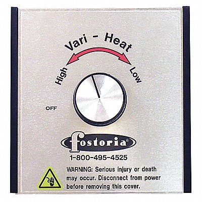 Variable Heat Control Knob Mounting Type Wall Voltage 120/240V AC 1 Phase For Use With 120/240V OCH Quartz Tube Models Only Includes Control Knob Amperage 15 A Frequency 60 Hz Overall HxWxD 5 in x 5 in x 3 in Voltage Range 208/240V AC