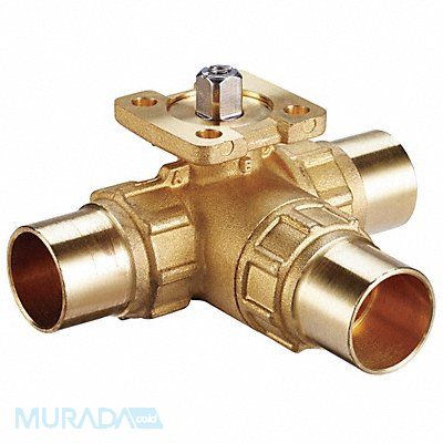 HVAC Control Ball Valve Valve Only 3-Way Coefficient of Volume 4.7 Connection Type Sweat Connection Size 1/2 in Material Stainless Steel Trim Safe Working Steam PSI 15 with Thermal Spacer Safe Working Water PSI 580 psi Closeoff Pressure 200 psi Max Water Temp 284 Degrees F Height 1 7/8 in Width 1 29/32 in Depth 3 25/32 in Power Source Electric Actuator For Use With M9000 or VA9000 Series Actuators Includes Valve Only