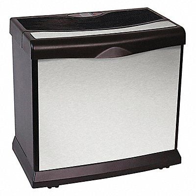 Portable Humidifier Console Max Square Foot Capacity 4 000 Voltage 120 V AC 2.8 A Amps AC 165 Watts Height 22 3/4 in Width 24 1/4 in Depth 15 in Max Runtime 55 hr 5 gal Water Reservoir Drain Type Dual Bottles Number of Speeds 3 Replacement Wick HDC12 Wick Treated With Antimicrobial Cord Length 60 in NEMA Plug Configuration 1-15P Color Brushed Nickel
