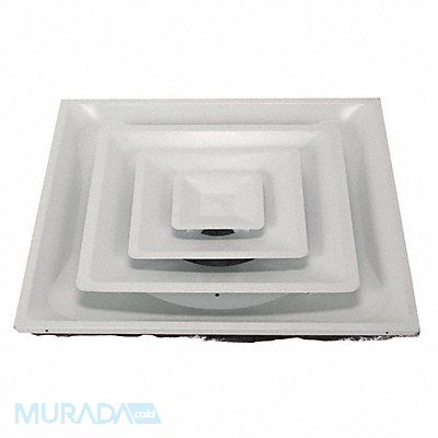 Diffuser Mounting Style Surface Mount Mounting Location Ceiling Wall Product Type Ceiling Diffuser Overall Depth 3 1/2 in Overall Height 23 3/4 in Overall Width 23 3/4 in Filter Depth Not Applicable Filter Height Not Applicable Filter Width Not Applicable Duct Size 6 to 12 in Face Type Square Cone Adjustable Blades No Hole Size Not Applicable Overall Diameter Not Applicable Color White Material Steel Insulated No Air Diffusion Angle 360 Degrees Shape Square