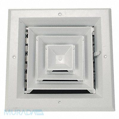 Diffuser Mounting Style Surface Mount Mounting Location Ceiling Wall Product Type Ceiling Diffuser Overall Depth 2 1/4 in Overall Height 11 in Overall Width 11 in Filter Depth Not Applicable Filter Height Not Applicable Filter Width Not Applicable Duct Size 8 in Face Type 4-Way Louvered Adjustable Blades No Hole Size 1/2 in Overall Diameter Not Applicable Color White Material Aluminum Insulated No Air Diffusion Angle 360 Degrees Shape Square
