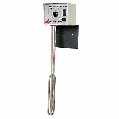 Sanitizing Sink/Tank Immersion Heater 1 000 W Watts Sheath Material Incoloy(R) Watt Density 8 sq in Heater Voltage 120V AC 1 Phase Overall Length 22 1/2 in Control Range 55 Degrees to 200 Degrees F Enclosure Type Secured to Aluminum Base Min Immersion Depth 8 in Height 19 1/2 in Special Information Indoor Operation Temperature is Thermostatically Controlled and Adjustable