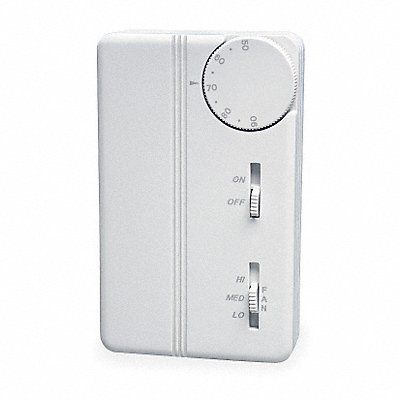 Fan Coil Thermostat Electric Line Voltage Electric Low Voltage Thermostat Switch Type SPDT Switch Action Open/Close on Rise Number of Switches 1 Thermostat Control Range 50 Degrees to 90 Degrees F Differential (Deg. F) 3 Thermostat Heating/Cooling Heating/Cooling Thermostat Number of Pipes 1 Thermostat Number of Speeds 3 Fan Switching Hi-Med-Low System Switching On-Off Sensor Type Bi-Metal 4 1/2 in Sensing Bulb Dia (In.) - 2 7/8 in Sensing Bulb Length (In.) - 1 1/16 in