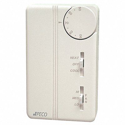 Fan Coil Thermostat Analog Electronic Thermostat Switch Type Triac Switch Action Open/Close on Rise Number of Switches 6 Thermostat Control Range 50 Degrees to 90 Degrees F Differential (Deg. F) 1 Thermostat Heating/Cooling Heating/Cooling Thermostat Number of Pipes 2 or 4 Thermostat Number of Speeds 3 Fan Switching Hi-Med-Low System Switching Heat-Off-Cool Sensor Type Thermistor 2 13/16 in 4 1/2 in 1 in