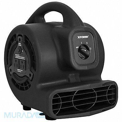 Air Mover Pivoting No Air Flow Direction Variable Maximum Airflow Capacity 600 cfm Number of Speeds 3 Motor Horsepower 1/8 hp Nameplate Voltage 115V Full Load Current 1.2 A Frequency 60 Hz Daisy Chain Capability Yes Daisy Chain Capacity 3 Units Number of Power Outlets 2 NEMA Plug Configuration NEMA 5-15 GFCI Protected No Power Cord Length 10 ft Blower Wheel Diameter 7 in Standards CETL ETL Overall Height 12 1/4 in Overall Length 11 1/2 in