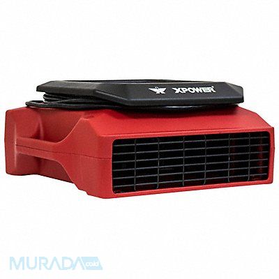 Low Profile Air Mover Pivoting No Air Flow Direction Variable Maximum Airflow Capacity 1 050 cfm Number of Speeds 3 Motor Horsepower 1/3 hp Nameplate Voltage 115V Full Load Current 2.8 A Frequency 60 Hz Daisy Chain Capability Yes Daisy Chain Capacity 3 Units Number of Power Outlets 2 NEMA Plug Configuration NEMA 5-15 GFCI Protected No Power Cord Length 15 ft Blower Wheel Diameter 12 1/2 in Standards CETL ETL Overall Height 8 1/4 in Overall Length 17 5/8 in