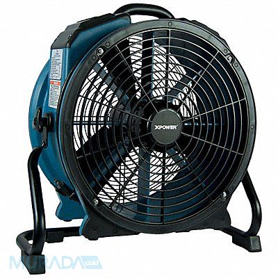 Axial Air Mover Pivoting Yes Air Flow Direction 360 Degrees Maximum Airflow Capacity 3 600 cfm Number of Speeds Variable Motor Horsepower 1/3 hp Nameplate Voltage 115V Full Load Current 2.8 A Frequency 60 Hz Daisy Chain Capability Yes Daisy Chain Capacity 3 Units Number of Power Outlets 2 NEMA Plug Configuration NEMA 5-15 GFCI Protected No Power Cord Length 20 ft Blower Wheel Diameter 18 in Standards CETL ETL Overall Height 22 1/2 in Overall Length 21 7/8 in
