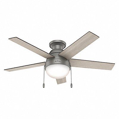 Decorative Ceiling Fan 46 in Blade Diameter 120 V AC Voltage 63 W Fan Watts Phase 1 3 155 cfm 181/84/50 RPM RPM Max Mounting Height 8 to 10 ft Number of Speeds Variable Blade Finish Light Grey Oak/Grey Walnut Housing Finish Matte Silver Number of Blades 5 Speed Controllable - Fans Yes 0.5 A Amps 60 Hz Hz Max Ambient Temp 104 Degrees F Light Kit Dome Reversible Yes Mount Type Flush mount Fan Mounting Location Ceiling 3/4 in Down Rod Outside Dia Thermal Protection Auto