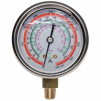Replacement High Side Pressure Gauge Diameter 2 3/4 in Working Pressure 0 to 500 psi Connection Size 1/8 in (M)NPT Color Red For Use With R-12 R-22 R-502 Application Replacement Manifold Gauge for Manifold Gauge Sets