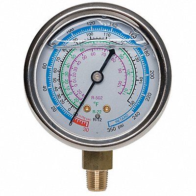 Replacement Low Side Pressure Gauge Diameter 2 3/4 in Working Pressure 30 in Hg to 350 psi Connection Size 1/8 in (M)NPT Color Blue For Use With R-12 R-22 R-502 Application Replacement Manifold Gauge for Manifold Gauge Sets