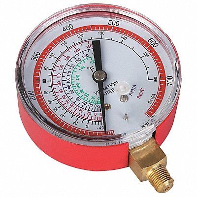 Replacement High Side Pressure Gauge Diameter 3 1/8 in Working Pressure 0 to 800 psi Connection Size 1/8 in (M)NPT Color Red For Use With R-22 R-404A R-407C R-410A Application Replacement Manifold Gauge for Manifold Gauge Sets