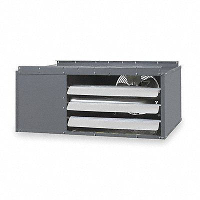 Gas Wall and Ceiling Unit Heater Gas Type NG/LP Combustion Type Field Convertible Fan Type Propeller BtuH Input 60 000 BtuH Output 48 800 740 cfm Air Flow 4.1 A Full Load Amps Gas Connection 1/2 in Flue Dia 4 in O.C. Mounting Adjustable Height 15 7/8 in Width 30 in Depth 26 3/16 in Indoor Air Discharge Height 15 7/8 in Indoor Air Discharge Width 30 in Heater Voltage 115 V AC 60 Hz Air Temp Rise 60 Degrees F Installation Height 8 ft Ignition System Direct Spark