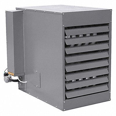 Gas Wall and Ceiling Unit Heater Gas Type NG Combustion Type Field Convertible Fan Type Propeller BtuH Input 200 000 BtuH Output 166 000 3 200 cfm Air Flow 8.0 A Full Load Amps Gas Connection 1/2 in Flue Dia 5 in O.C. Mounting 30 5/8 in Height 33 3/4 in Width 37 1/4 in Depth 43 1/2 in Indoor Air Discharge Height 24 1/2 in Indoor Air Discharge Width 30 3/4 in Heater Voltage 115 V AC 60 Hz Air Temp Rise 47 Degrees F Installation Height 8 to 20 ft Ignition System Direct Spark