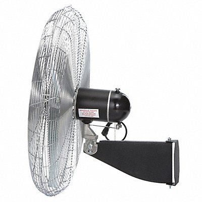 Standard-Duty Industrial Fan Blade Dia 24 in Stationary Non-Oscillating 3 Speeds Voltage 115V AC 1 Phase CFM High 5220 CFM Low 2820 Air Velocity @ 20 ft 500 fpm Motor HP 1/3 hp Motor RPM 1080/700/540 Operating Amps 3 Fan Mounting Location Ceiling Wall Fan Accessory Style Standard Fan RPM 1080 Sound Level 71 dBA Max Ambient Temp 104 Degrees F Hz 60 Hz Watts 260 Motor Type Permanent Split Capacitor Drive Type Direct Drive Outside Dia 27 in Height 27 in Width 27 in