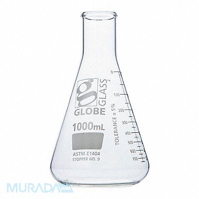 Erlenmeyer Flask Flask Type Erlenmeyer Labware Capacity - Metric 1 000 mL Labware Capacity - English 33.81 oz Labware Basic Material Glass Labware Body Material Type I Borosilicate Glass Labware Neck Style Straight Includes Closure No Graduation Range 250 to 1000 mL Graduation Subdivisions 50 mL Labware Clarity Transparent Labware Body Color Clear Labware ASTM Specification E1404 Labware Closure Type Stopper Labware Height - Metric 219 mm Stopper Size 9 Package Quantity 6