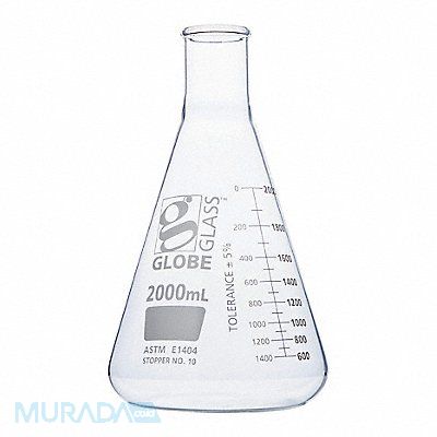 Erlenmeyer Flask Flask Type Erlenmeyer Labware Capacity - Metric 2 000 mL Labware Capacity - English 67.63 oz Labware Basic Material Glass Labware Body Material Type I Borosilicate Glass Labware Neck Style Straight Includes Closure No Graduation Range 600 to 2000 mL Graduation Subdivisions 100 mL Labware Clarity Transparent Labware Body Color Clear Labware ASTM Specification E1404 Labware Closure Type Stopper Labware Height - Metric 280 mm Stopper Size 10 Package Quantity 4