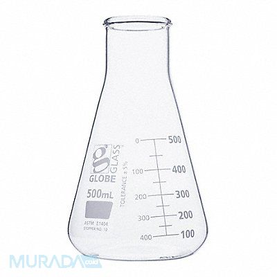 Erlenmeyer Flask Flask Type Erlenmeyer Labware Capacity - Metric 500 mL Labware Capacity - English 16.91 oz Labware Basic Material Glass Labware Body Material Type I Borosilicate Glass Labware Neck Style Straight Includes Closure No Graduation Range 100 to 500 mL Graduation Subdivisions 50 mL Labware Clarity Transparent Labware Body Color Clear Labware ASTM Specification E1404 Labware Closure Type Stopper Labware Height - Metric 103 mm Stopper Size 10 Package Quantity 6