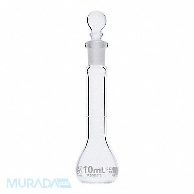 Volumetric Flask Flask Type Volumetric Labware Capacity - Metric 10 mL Labware Capacity - English 0.34 oz Labware Basic Material Glass Labware Body Material Type I Borosilicate Glass Labware Neck Style Straight Includes Closure Yes Labware Closure Color White Graduation Range No Graduations Labware Clarity Transparent Labware Body Color Clear Labware ASTM Specification E288 Labware Closure Type Pennyhead Stopper Labware Height - Metric 90 mm Stopper Size 9 Package Quantity 6