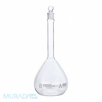 Volumetric Flask Flask Type Volumetric Labware Capacity - Metric 1 000 mL Labware Capacity - English 33.81 oz Labware Basic Material Glass Labware Body Material Type I Borosilicate Glass Labware Neck Style Straight Includes Closure Yes Labware Closure Color White Graduation Range No Graduations Labware Clarity Transparent Labware Body Color Clear Labware ASTM Specification E288 Labware Closure Type Pennyhead Stopper Labware Height - Metric 300 mm Stopper Size 22