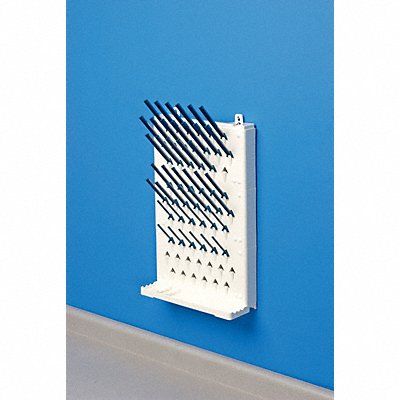Non-Electric Wallmount Dryer Number of Pegs 57 Material ABS Plastic White Height 23-1/2 in Width 14-3/4 in Format Single Sided 3 Tier For Use With Beakers Flasks Bottles Test Tubes and Cylinders Includes (18) 3 in (21) 4 in (18) 5 in