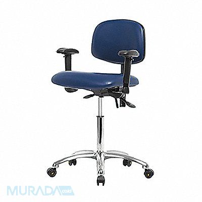 Vinyl ESD Task Chair Weight Capacity 300 lb Material Vinyl (Antibacterial) Seat Height Range 19 in to 24 in Color Blue Seat Width 18 1/2 in Seat Depth 17 in Seat Tilt Forward 10.5 Degrees Back Height 11 1/2 in Back Width 16 1/2 in Back Tilt Backward 13.5 Degrees Back Tilt Forward 10.5 Degrees Number of Casters 0 Number of Glides 5