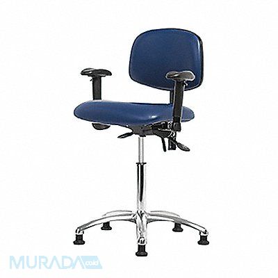 Vinyl ESD Task Chair Weight Capacity 300 lb Material Vinyl (Antibacterial) Seat Height Range 21-1/2 in to 29 in Color Blue Seat Width 18 1/2 in Seat Depth 17 in Seat Tilt Backward 9 Degrees Seat Tilt Forward 10.5 Degrees Back Height 11 1/2 in Back Width 16 1/2 in Back Tilt Backward 13.5 Degrees Back Tilt Forward 10.5 Degrees Number of Casters 0 Number of Glides 5