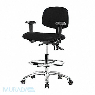 Vinyl ESD Task Chair Weight Capacity 300 lb Material Vinyl (Antibacterial) Seat Height Range 21-1/2 in to 29 in Color Black Seat Width 18 1/2 in Seat Depth 17 in Seat Tilt Backward 9 Degrees Seat Tilt Forward 10.5 Degrees Back Height 11 1/2 in Back Width 16 1/2 in Back Tilt Backward 13.5 Degrees Back Tilt Forward 10.5 Degrees Number of Casters 0 Number of Glides 5