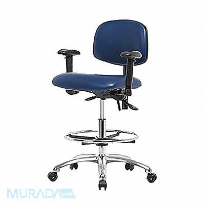 Vinyl ESD Task Chair Weight Capacity 300 lb Material Vinyl (Antibacterial) Seat Height Range 21-1/2 in to 29 in Color Blue Seat Width 18 1/2 in Seat Depth 17 in Seat Tilt Backward 9 Degrees Seat Tilt Forward 10.5 Degrees Back Height 11 1/2 in Back Width 16 1/2 in Back Tilt Backward 13.5 Degrees Back Tilt Forward 10.5 Degrees Number of Casters 0 Number of Glides 5