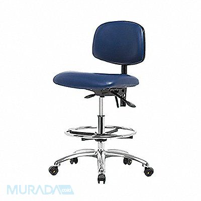Vinyl ESD Task Chair Weight Capacity 300 lb Material Vinyl (Antibacterial) Seat Height Range 21-1/2 in to 29 in Color Blue Seat Width 18 1/2 in Seat Depth 17 in Seat Tilt Forward 10.5 Degrees Back Height 11 1/2 in Back Width 16 1/2 in Back Tilt Backward 13.5 Degrees Back Tilt Forward 10.5 Degrees Number of Casters 0 Number of Glides 5