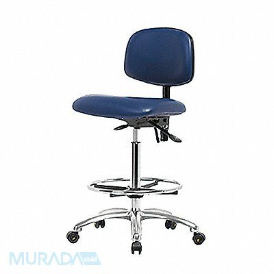Vinyl ESD Task Chair Weight Capacity 300 lb Material Vinyl (Antibacterial) Seat Height Range 26-1/4 in to 36 in Color Blue Seat Width 18 1/2 in Seat Depth 17 in Seat Tilt Forward 10.5 Degrees Back Height 11 1/2 in Back Width 16 1/2 in Back Tilt Backward 13.5 Degrees Back Tilt Forward 10.5 Degrees Number of Casters 0 Number of Glides 5