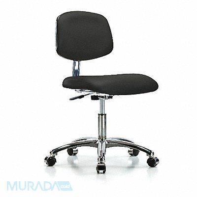 Vinyl Cleanroom Task Chair Weight Capacity 300 lb Material Vinyl (Antibacterial) Seat Height Range 18-1/2 in to 23-3/4 in Color Black Seat Width 18 1/2 in Seat Depth 17 in Back Height 11 1/2 in Back Width 16 1/2 in Number of Casters 5 Number of Glides 0