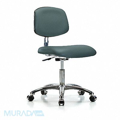 Vinyl Cleanroom Task Chair Weight Capacity 300 lb Material Vinyl (Antibacterial) Seat Height Range 18-1/2 in to 23-3/4 in Color Colonial Blue Seat Width 18 1/2 in Seat Depth 17 in Back Height 11 1/2 in Back Width 16 1/2 in Number of Casters 5 Number of Glides 0