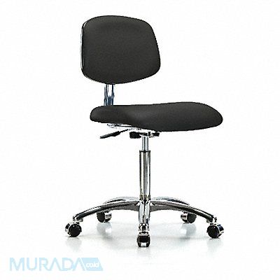 Vinyl Cleanroom Task Chair Weight Capacity 300 lb Material Vinyl (Antibacterial) Seat Height Range 21-1/2 in to 29 in Color Black Seat Width 18 1/2 in Seat Depth 17 in Back Height 11 1/2 in Back Width 16 1/2 in Number of Casters 5 Number of Glides 0