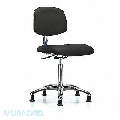 Vinyl Cleanroom Task Chair Weight Capacity 300 lb Material Vinyl (Antibacterial) Seat Height Range 21-1/2 in to 29 in Color Black Seat Width 18 1/2 in Seat Depth 17 in Back Height 11 1/2 in Back Width 16 1/2 in Number of Casters 0 Number of Glides 5