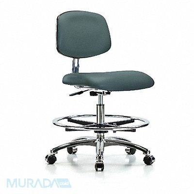 Vinyl Cleanroom Task Chair Weight Capacity 300 lb Material Vinyl (Antibacterial) Seat Height Range 21-1/2 in to 29 in Color Colonial Blue Seat Width 18 1/2 in Seat Depth 17 in Back Height 11 1/2 in Back Width 16 1/2 in Number of Casters 5 Number of Glides 0
