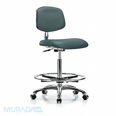Vinyl Cleanroom Task Chair Weight Capacity 300 lb Material Vinyl (Antibacterial) Seat Height Range 25-3/4 in to 35-1/2 in Color Colonial Blue Seat Width 18 1/2 in Seat Depth 17 in Back Height 11 1/2 in Back Width 16 1/2 in Number of Casters 5 Number of Glides 0