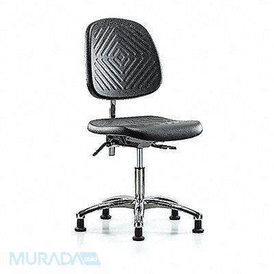 Polyurethane Cleanroom Task Chair Weight Capacity 300 lb Material Polyurethane Seat Height Range 17-1/2 in to 22-3/4 in Color Black Seat Width 16 in Seat Depth 17 in Seat Tilt Backward 9 Degrees Seat Tilt Forward 10.5 Degrees Back Height 15 in Back Width 15 1/2 in Back Tilt Backward 13.5 Degrees Back Tilt Forward 10.5 Degrees Number of Casters 0 Number of Glides 5