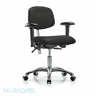 Vinyl Cleanroom Task Chair Weight Capacity 300 lb Material Vinyl (Antibacterial) Seat Height Range 19 in to 24 in Color Black Seat Width 18 1/2 in Seat Depth 17 in Seat Tilt Forward 10.5 Degrees Back Height 11 1/2 in Back Width 16 1/2 in Back Tilt Backward 13.5 Degrees Back Tilt Forward 10.5 Degrees Number of Casters 5 Number of Glides 0