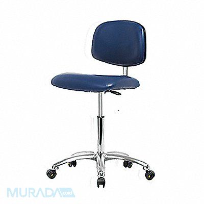 Vinyl ESD/Cleanroom Task Chair Weight Capacity 300 lb Material Vinyl (Antibacterial) Seat Height Range 21-1/2 in to 29 in Color Blue Seat Width 18 1/2 in Seat Depth 17 in Back Height 11 1/2 in Back Width 16 1/2 in Number of Casters 0 Number of Glides 5