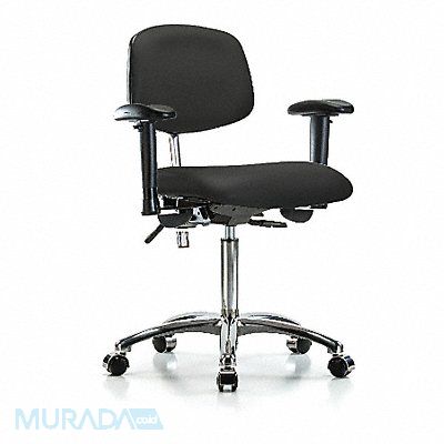 Vinyl Cleanroom Task Chair Weight Capacity 300 lb Material Vinyl (Antibacterial) Seat Height Range 21-1/2 in to 29 in Color Black Seat Width 18 1/2 in Seat Depth 17 in Seat Tilt Forward 10.5 Degrees Back Height 11 1/2 in Back Width 16 1/2 in Back Tilt Backward 13.5 Degrees Back Tilt Forward 10.5 Degrees Number of Casters 5 Number of Glides 0