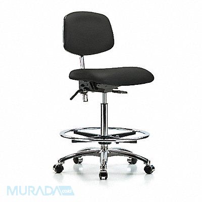 Vinyl Cleanroom Task Chair Weight Capacity 300 lb Material Vinyl (Antibacterial) Seat Height Range 26-1/4 in to 36 in Color Black Seat Width 18 1/2 in Seat Depth 17 in Seat Tilt Forward 10.5 Degrees Back Height 11 1/2 in Back Width 16 1/2 in Back Tilt Backward 13.5 Degrees Back Tilt Forward 10.5 Degrees Number of Casters 5 Number of Glides 0