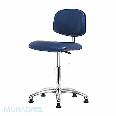 Vinyl ESD/Cleanroom Task Chair Weight Capacity 300 lb Material Vinyl (Antibacterial) Seat Height Range 21-1/2 in to 29 in Color Blue Seat Width 18 1/2 in Seat Depth 17 in Back Height 11 1/2 in Back Width 16 1/2 in Number of Casters 0 Number of Glides 5
