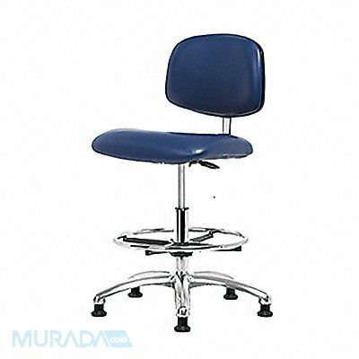 Vinyl ESD/Cleanroom Task Chair Weight Capacity 300 lb Material Vinyl (Antibacterial) Seat Height Range 21-1/2 in to 29 in Color Blue Seat Width 18 1/2 in Seat Depth 17 in Back Height 11 1/2 in Back Width 16 1/2 in Number of Casters 0 Number of Glides 5
