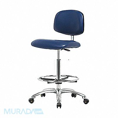 Vinyl ESD/Cleanroom Task Chair Weight Capacity 300 lb Material Vinyl (Antibacterial) Seat Height Range 25-3/4 in to 35-1/2 in Color Blue Seat Width 18 1/2 in Seat Depth 17 in Back Height 11 1/2 in Back Width 16 1/2 in Number of Casters 0 Number of Glides 5