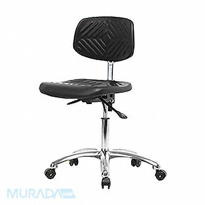Polyurethane ESD Task Chair Weight Capacity 300 lb Material Polyurethane Seat Height Range 17-1/2 in to 22-3/4 in Color Black Seat Width 16 in Seat Depth 17 in Seat Tilt Forward 10.5 Degrees Back Height 10 1/2 in Back Width 15 1/2 in Back Tilt Backward 13.5 Degrees Back Tilt Forward 10.5 Degrees Number of Casters 0 Number of Glides 5