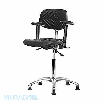 Polyurethane ESD Task Chair Weight Capacity 300 lb Material Polyurethane Seat Height Range 20-1/2 in to 28 in Color Black Seat Width 16 in Seat Depth 17 in Seat Tilt Backward 9 Degrees Seat Tilt Forward 10.5 Degrees Back Height 10 1/2 in Back Width 15 1/2 in Back Tilt Backward 13.5 Degrees Back Tilt Forward 10.5 Degrees Number of Casters 0 Number of Glides 5