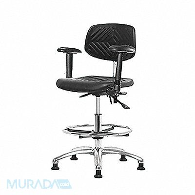 Polyurethane ESD Task Chair Weight Capacity 300 lb Material Polyurethane Seat Height Range 20-1/2 in to 28 in Color Black Seat Width 16 in Seat Depth 17 in Seat Tilt Backward 9 Degrees Seat Tilt Forward 10.5 Degrees Back Height 10 1/2 in Back Width 15 1/2 in Back Tilt Backward 13.5 Degrees Back Tilt Forward 10.5 Degrees Number of Casters 0 Number of Glides 5
